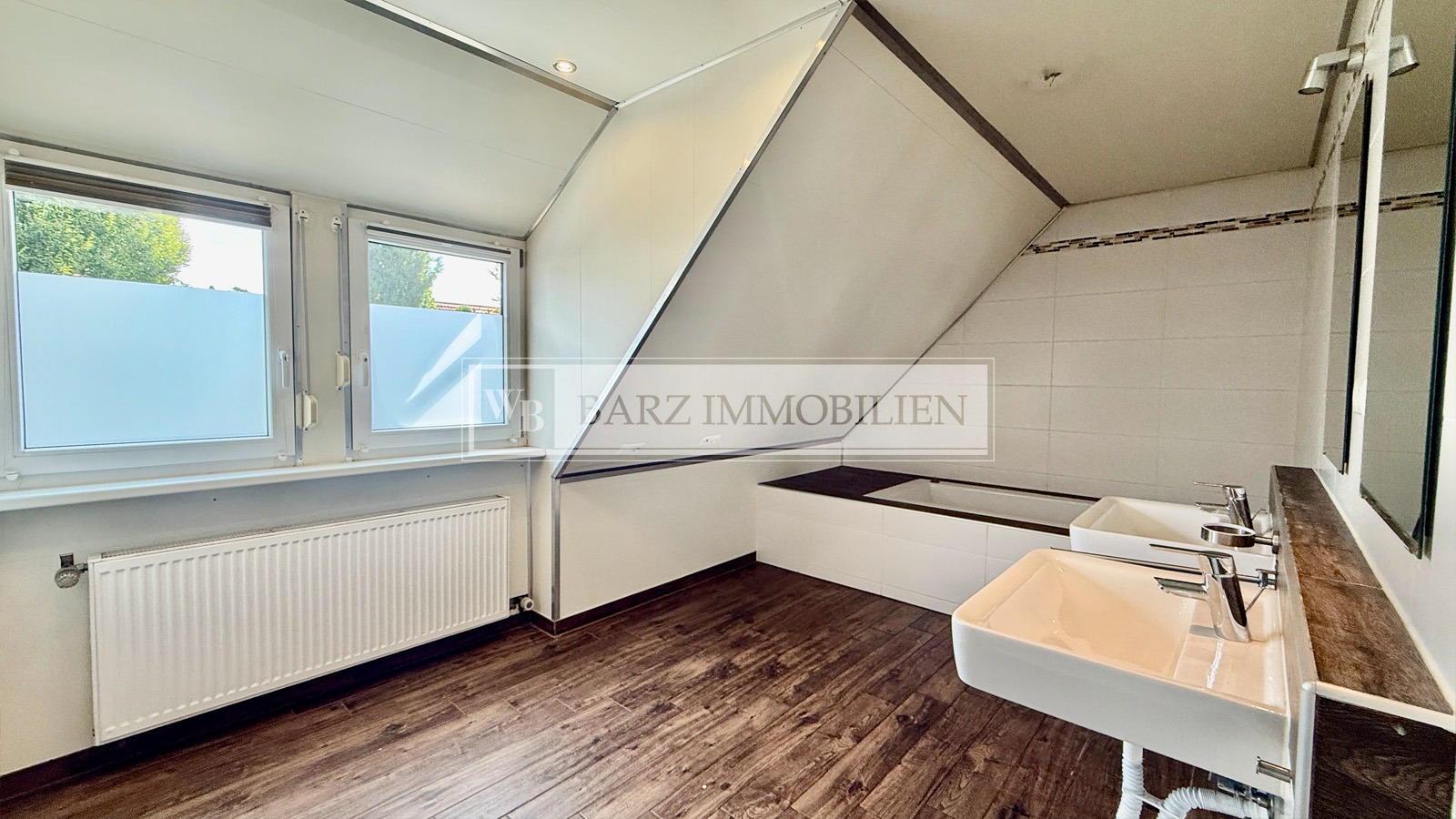 • Neues Badezimmer mit Dusche, Wanne, Doppelwaschbecken, Fliesen