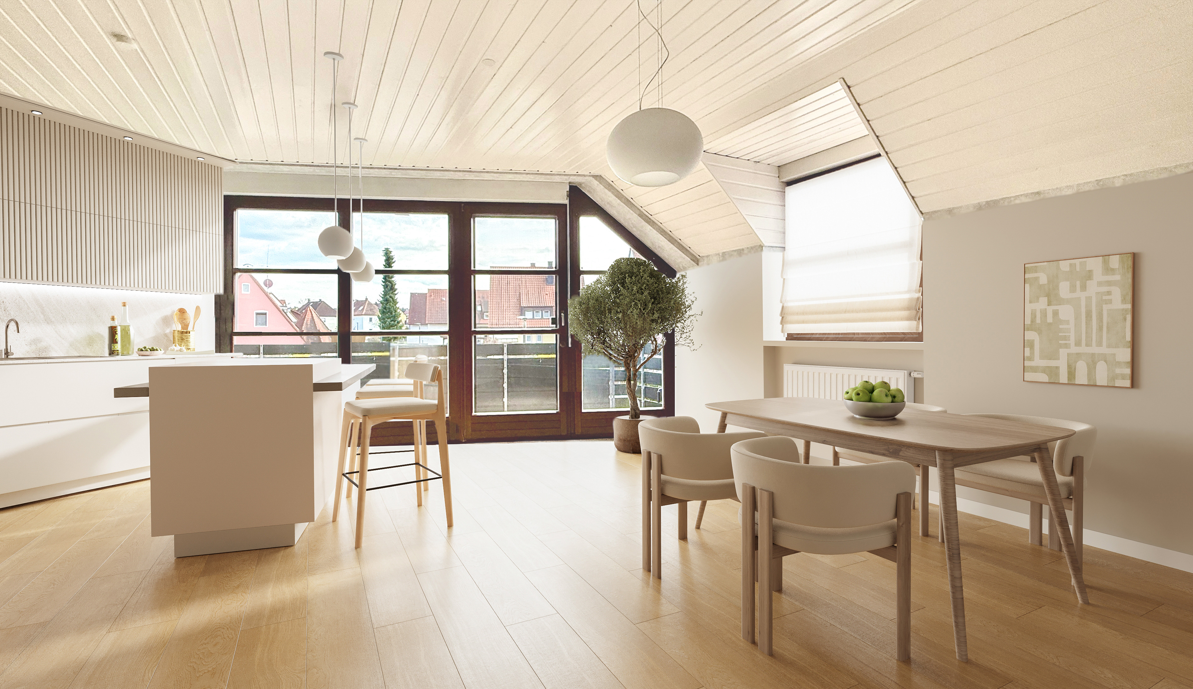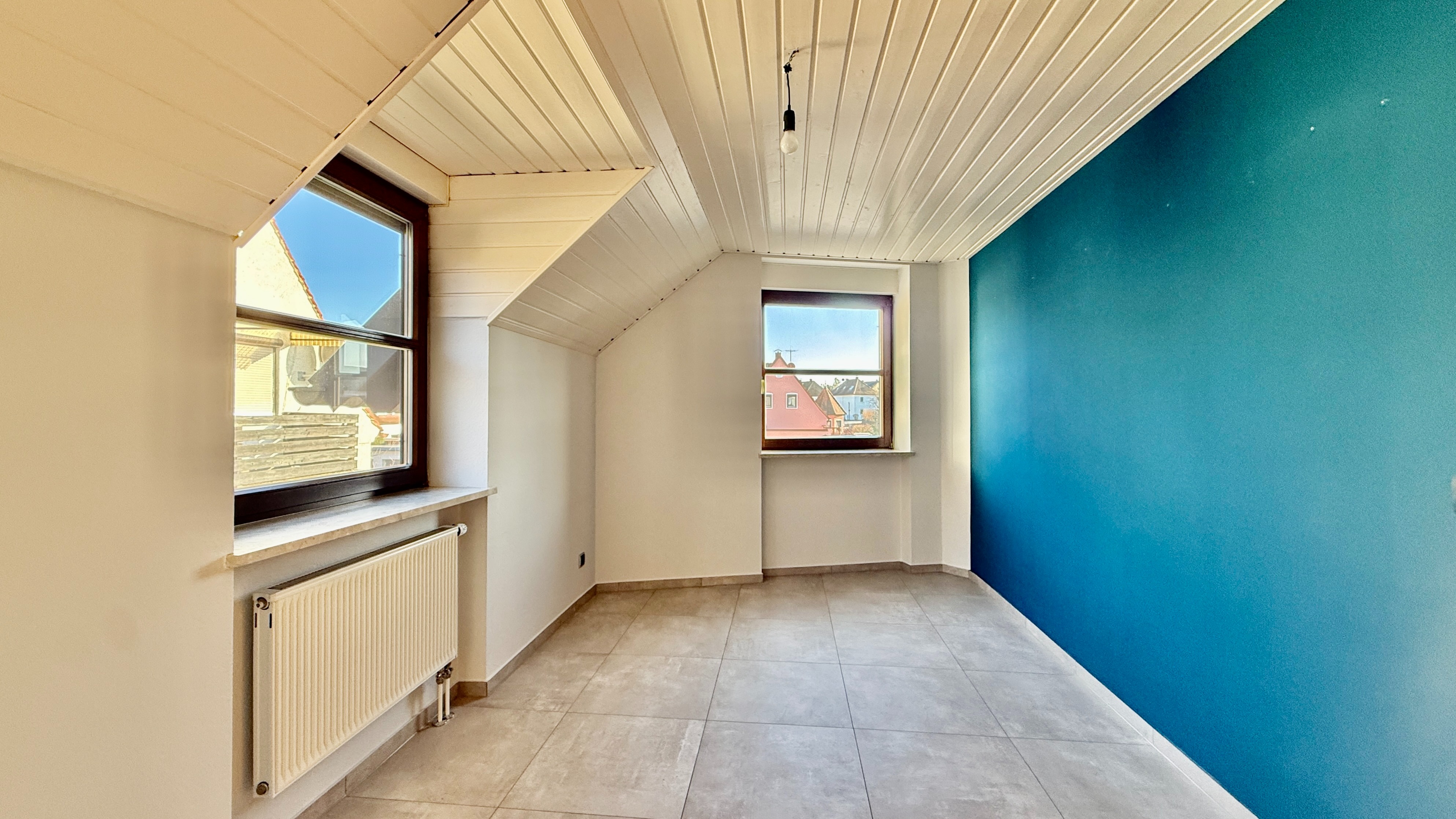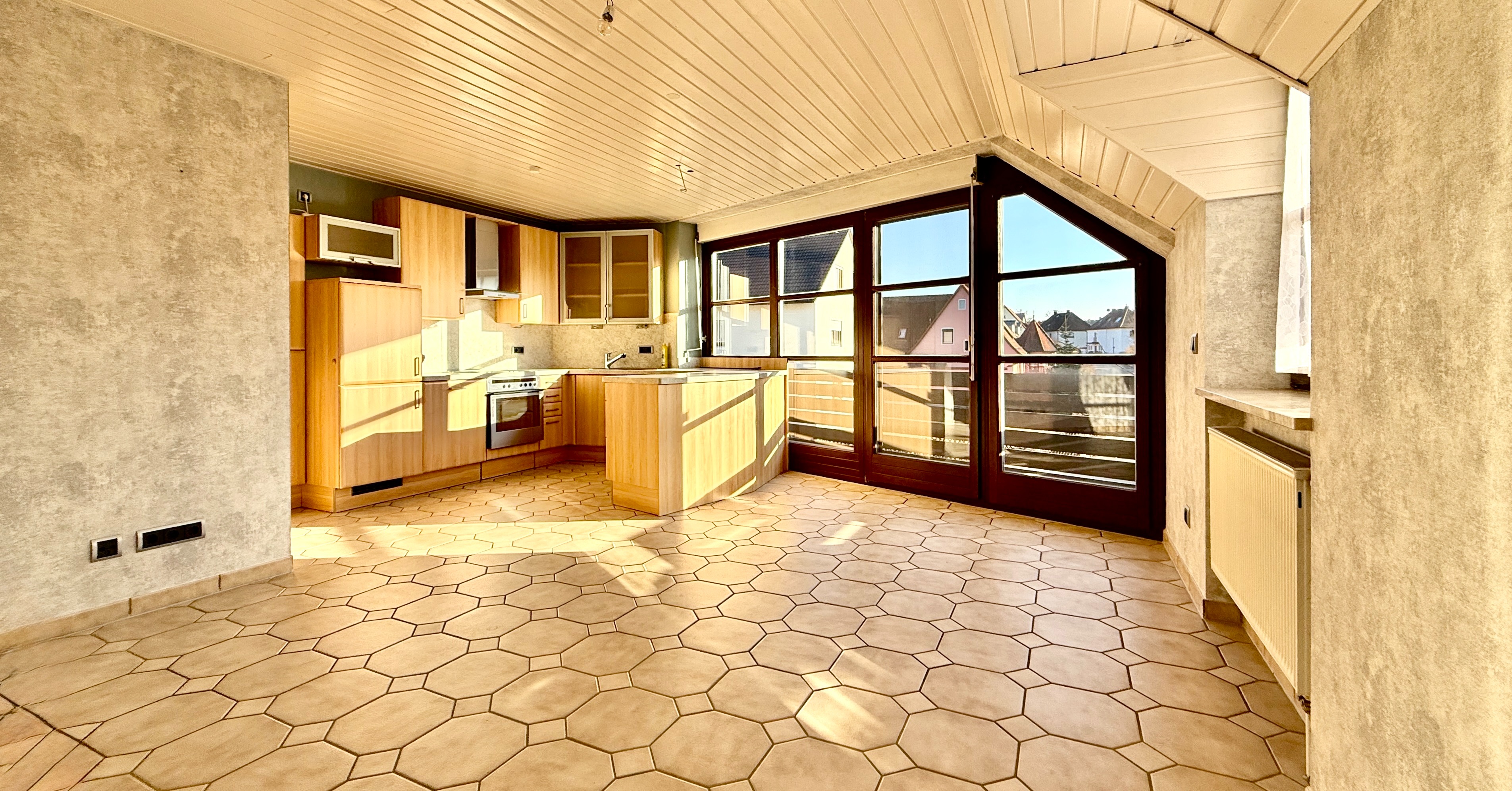 Vor diesem Hintergrund, erfüllt diese einzigartig geschnittene Immobilie viele Wünsche, z.B.: ausreichend Platz und Freizeitfläche für eine junge Familie, oder Wohnen und Arbeiten, oder als wertbeständige Kapitalanlage. Die Immobilie befindet sich mitten im beliebten, naturnahen Schwabach-Penzendorf und beginnt im 1. Stockwerk eines kleinen Mehrfamilienhauses mit insgesamt nur 4 Parteien. Empfangen wird man von einem geräumigen Eingangsbereich, der weiter in den offen gestalteten Wohn-/Essbereich mit Einbauküche führt (gegen Ablöse). Zusätzlich zum großen Schlafzimmer, befinden sich ebenfalls noch ein Kinderzimmer/Büro auf dieser Etage. Das besondere Highlight dieser Immobilie ist, der bereits erwähnte erschlossene Dachgeschoss-Anteil (ehemals Dachboden) mit zwei Räumen sowie einen großzügigen Abstellraum. Zusätzlich abgerundet wird das Stockwerk von einem bereits modernisierten, hellen Badezimmer mit Dusche. Ein weiteres Highlight im Wohnzimmer ist sicherlich der großzügige Balkon, welcher durch seine südliche Ausrichtung den ganzen Tag über von der Sonne durchflutet wird. Wertvoll ergänzt wird diese schöne Wohnung durch einen Stellplatz direkt vor der Immobilie (Ablöse 9.500.- EUR) sowie einem schönen großzügigen Kellerabteil. Wer eine individuell geschnittene Wohnung direkt im Grünen sucht, findet hier seinen eigenen Immobilientraum – eine exzellente Immobilie in einer ruhigen und sehr guten Lage von Schwabach-Penzendorf, die keine Wünsche offen lässt.